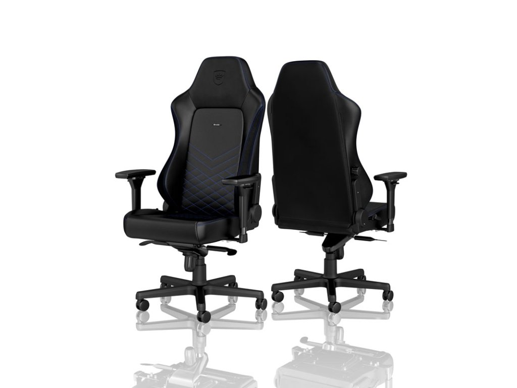 Herné kreslo noblechairs HERO v čiernej farbe s modrým prešívaním na prvý pohľad: