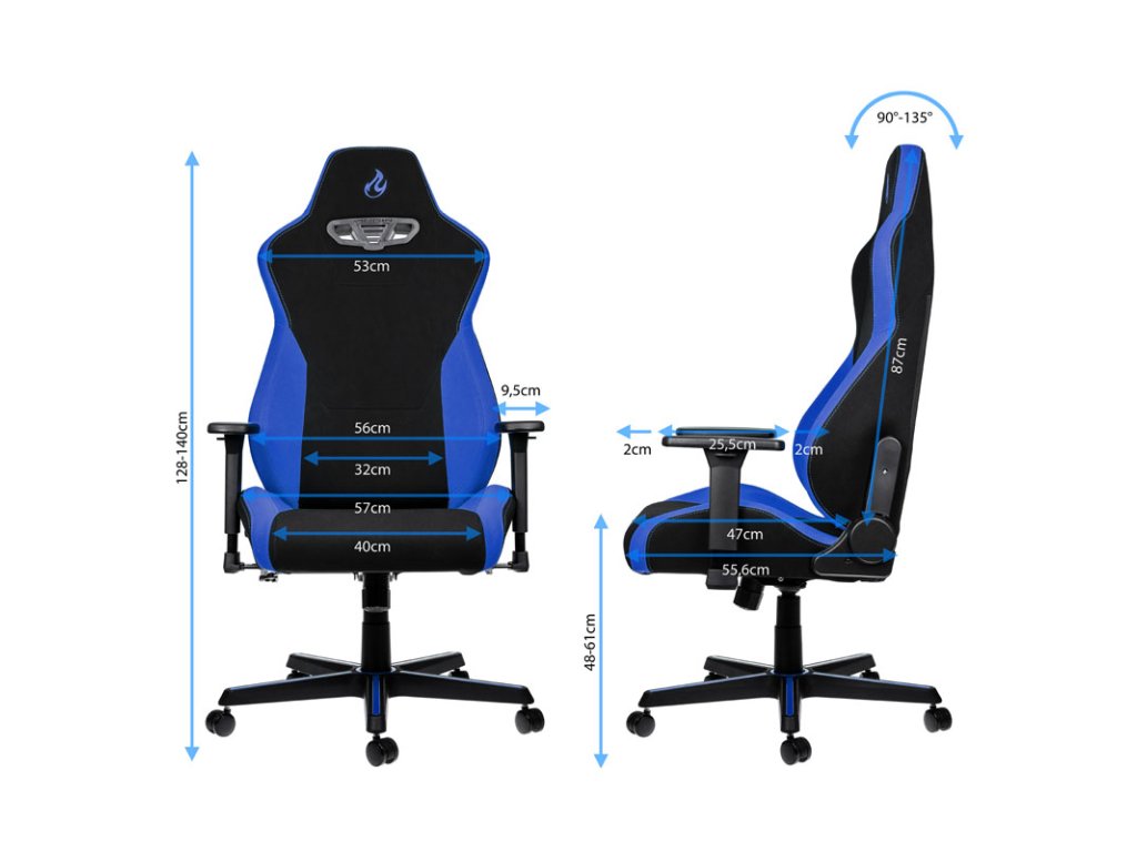 Ak sa chcete pri hraní oprieť, môžete použiť nielen hojdací mechanizmus, ale aj nastaviť operadlo. Vďaka uhlu 90 až 135 stupňov sa môžete oprieť a relaxovať a dokonca použiť herné kreslo na krátke zdriemnutie počas načítania obrazovky. Spoločnosť Nitro Concepts dodáva aj zodpovedajúcedva pohodlné a ergonomicky podporné vankúše pre krčnú a bedrovú oblasť.