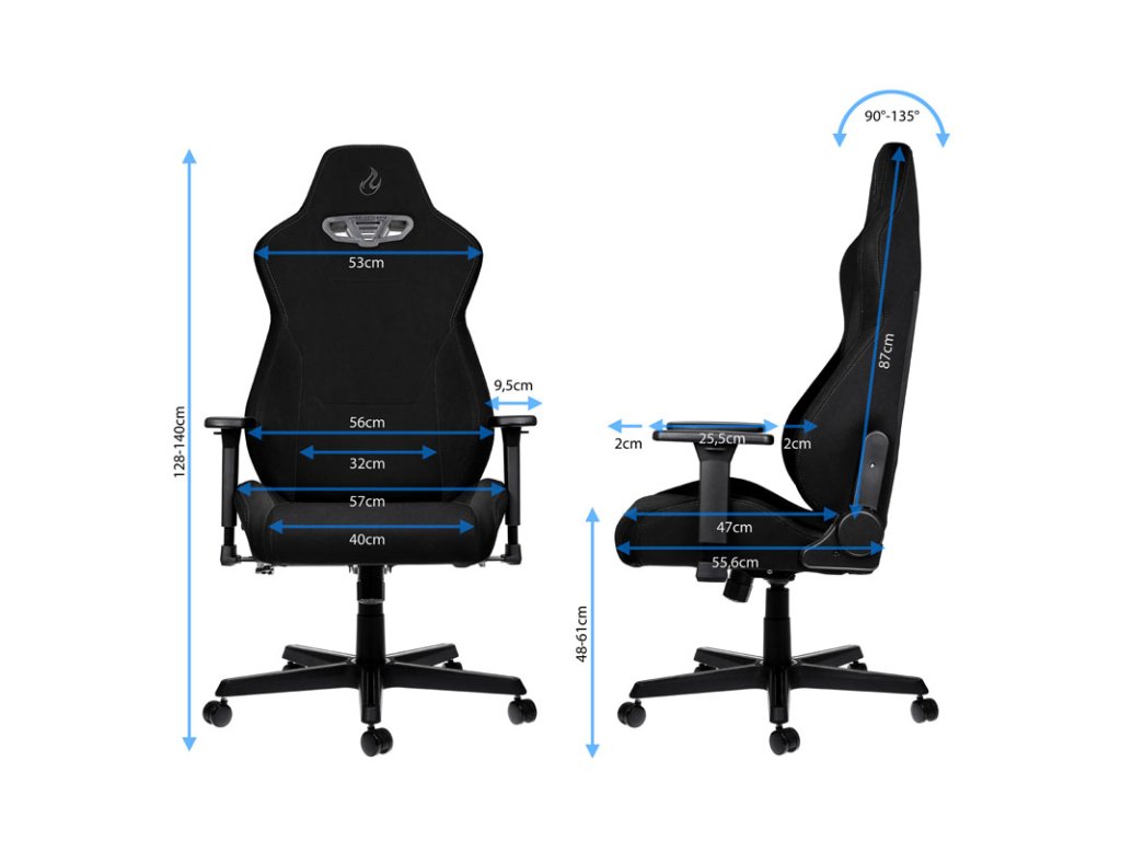 Ak sa chcete pri hraní oprieť, môžete použiť nielen hojdací mechanizmus, ale aj nastaviť operadlo. Vďaka uhlu 90 až 135 stupňov sa môžete oprieť a relaxovať a dokonca použiť herné kreslo na krátke zdriemnutie počas načítania obrazovky. Spoločnosť Nitro Concepts dodáva aj zodpovedajúcedva pohodlné a ergonomicky podporné vankúše pre krčnú a bedrovú oblasť.