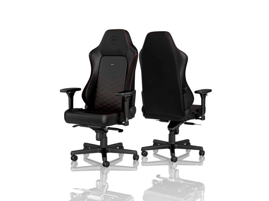 Herné kreslo noblechairs HERO v čiernej farbe s červeným prešívaním na prvý pohľad: