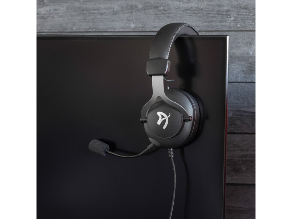 Slúchadlá sú vizuálne príťažlivé vďaka klasickej a elegantnej čiernej farbe. Pevne vyrobená náhlavná súprava s uzavretou konštrukciou spoľahlivo chráni poslucháča pred okolitým hlukom. Je preto ideálna pre hráčov, ktorí sa chcú plne sústrediť na hru. StránkaMikrofón sa dá odpojiť a svojou všesmerovou orientáciou zaručuje trvalo dobré hlasové nahrávky.Stránkaveľký 50 mm reproduktor sú zasadené do robustných hliníkových rámov a produkujú neskreslené, silné basy a krištáľovo čisté výšky pri akejkoľvek hlasitosti. V kombinácii s ich vyváženým ladením je výsledkom realistická zvuková kulisa pri hrách alebo filmoch. Slúchadlá sú ideálne aj na prehrávanie hudby vďaka veľkoryso dimenzovaným meničom. Sintegrované diaľkové ovládanie hlasitosť sa dá rýchlo a jednoducho nastaviť a mikrofón sa dá stlmiť.