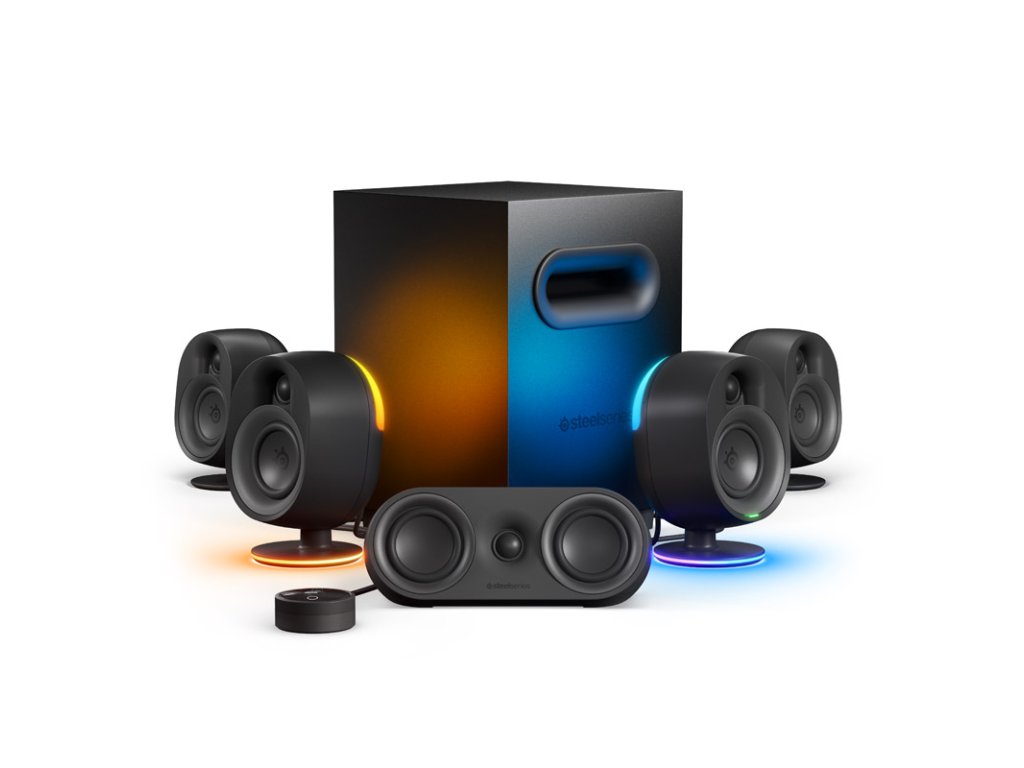 Doplňte svoju hernú zostavu o správny zvuk aOsvetlenie RGB. SSteelSeries Arena 9 Reproduktor so subwooferom poskytuje široký zvukový rozsah, ktorý zlepšuje hranie hier a zábavu. Zároveň sa pripája k viacerým herným zariadeniam súčasne, takže si môžete kedykoľvek vychutnať zvuk z akéhokoľvek zariadenia.Pohlcujúci priestorový zvuk 5.1 pre hráčov