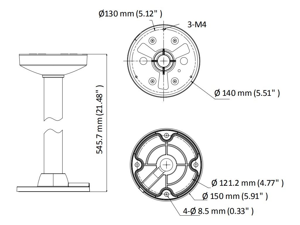 Hikvision DS-1271ZJ-140-DM45Stropní držák pro dome kamery Hikvision série D3xx. Zeď musí unést více než 3krát větší hmotnost, než je celková hmotnost kamery a držáku.