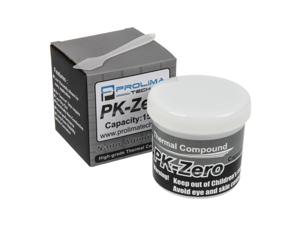 S modelom PK-Zero má špecialista na chladiče Prolimatech vo svojom sortimente o niečo lacnejšiu termálnu pastu pre špičkové aplikácie v porovnaní s mimoriadne populárnou sériou PK-Nano, ktorá získala množstvo ocenení v testoch. V závislosti od použitia je táto 150 gramová plechovka dostatočná pre mnohé aplikácie.PK-Zero je vynikajúcou voľbou, pokiaľ ide o optimálny odvod tepla z CPU alebo GPU do chladiča. "Tepelnú zmes" spoločnosti Prolimatech možno použiť s vlastnými produktmi, ako sú Genesis alebo Megahalemy, ako aj s produktmi iných výrobcov.