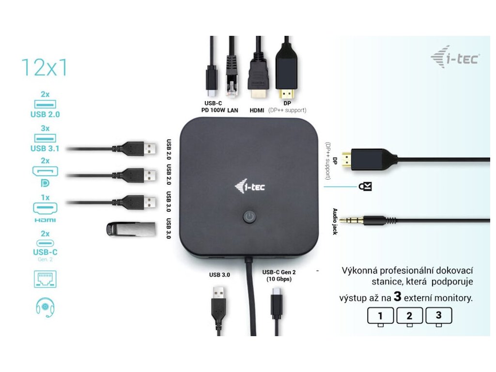 i-tec dokovací stanice/ 2x USB-C/ 2x USB 2.0/ 3x USB 3.0/ HDMI/ 2x DP/ LAN/ Power Delivery 100 W