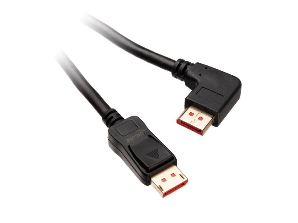 SDisplayPort je vysokokvalitný a univerzálny štandard pripojenia, ktorý prenáša obrazové a zvukové signály v najlepšej možnej digitálnej kvalite. Pripojenia DisplayPort sú vhodné na šifrovanie HDCP.DisplayPort 1.4 podporuje rozlíšenie 7 680 x 4 320 pixelov (UHD-II/FUHD, Full UHD) pri obnovovacej frekvencii 60 Hz alebo 3 840 x 2 160 pixelov pri 120 Hz. Prenáša sa aj HDR10 a až 32 zvukových kanálov.Tento kábel DisplayPort odInLine s dĺžkou 1 m je vhodný na pripojenie zariadení, ktoré sú veľmi blízko seba. Tým sa zabráni zbytočnému preplneniu káblov. Vďakaľavá uhlová zástrčka to umožňuje dosiahnuť optimálne vedenie káblov. Kábel nemusí byť zalomený, a to ani v prípade prípojok, ktoré smerujú priamo do steny. Tým sa účinne predchádza opotrebovaniu a možnému poškodeniu kábla.