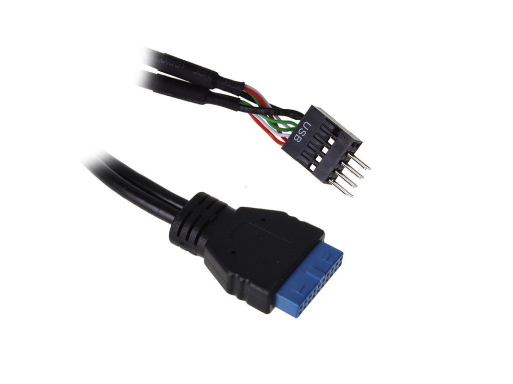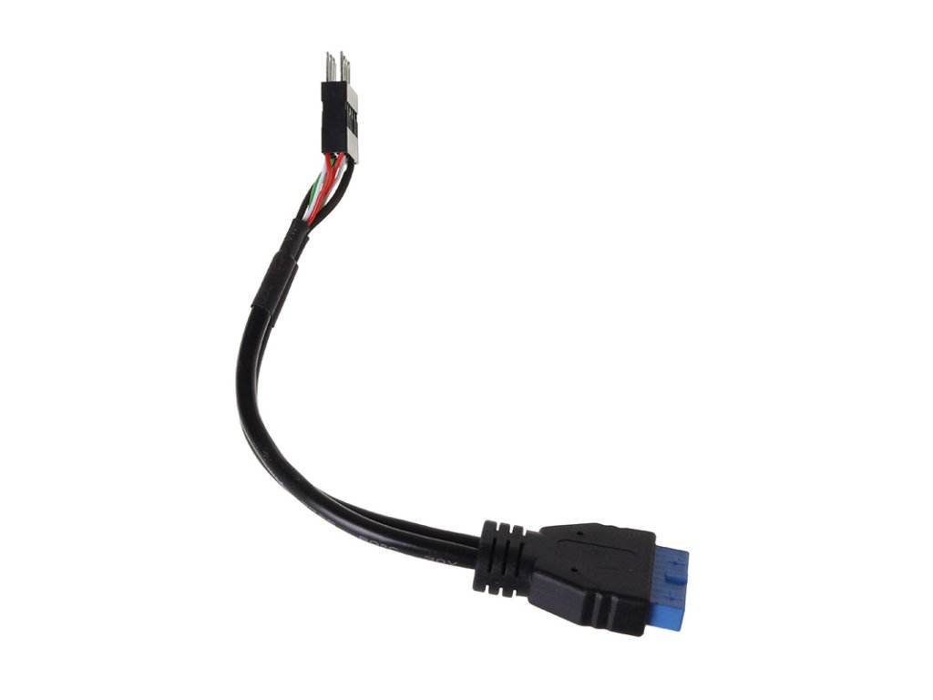 Pomocou tohto adaptérového kábla od spoločnosti InLine, ktorá sa špecializuje na príslušenstvo, je možné prevádzkovať interné pripojenie USB 2.0 (napr. z I/O panelu skrine) na hlavičke USB 3.0 príslušnej základnej dosky.Približne 15 cm dlhý kábel má na jednej strane 8-pinový konektor USB 2.0 (ako na základných doskách) a na druhej strane 19-pinový konektor USB 3.0, ktorý je pripojený k základnej doske.