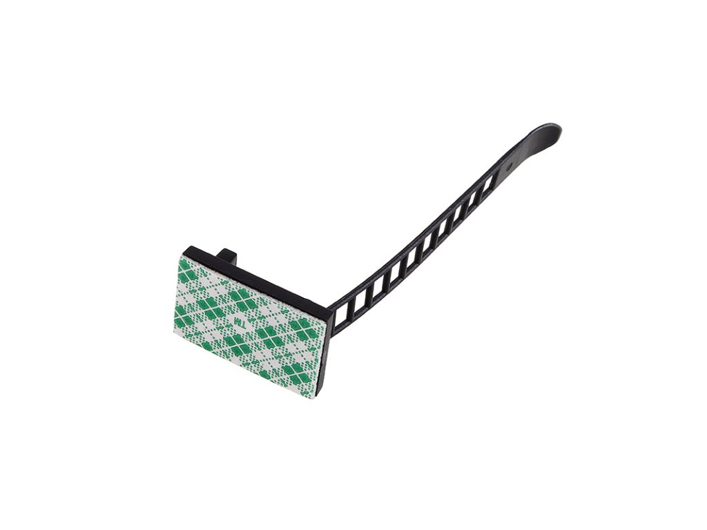 Dodatočná montáž systému vedenia káblov je však v mnohých skriniach alebo na neprístupných miestach náročná. V takýchto prípadoch sa odporúča použiť káblový zväzok so samolepiacou základňou. To znamená, že na montáž zväzkovej svorky je potrebný len hladký povrch. Súprava obsahuje desať týchto káblových zväzkov v čiernej farbe s dĺžkou 6,4 cm.