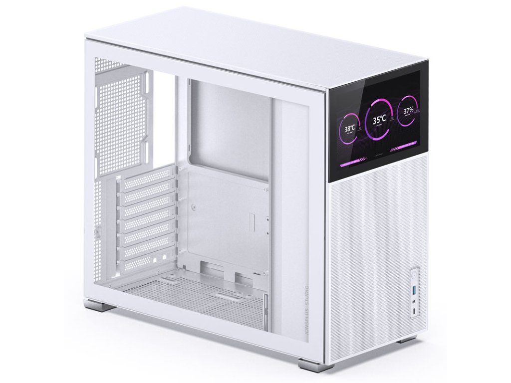 V tejto verzii modelu Jonsbo D31 je vpredu nainštalovaný displej TFT-LC s uhlopriečkou 8 palcov. Pomocou softvéru AIDA môžete zobrazovať systémové informácie alebo animované šetriče obrazovky na rozlíšení 1 280 x 800 pixelov. Túto aplikáciu si však musíte zakúpiť sami. Displej je chránený tvrdeným sklom. Obrazovku môžete nahradiť aj bežným rámčekom, ktorý sa dodáva s krytom, a umiestniť ju samostatne na herný stôl. Pripája sa prostredníctvom portu mini HDMI. Obrazovku môžete zapínať a vypínať a ovládať jas pomocou bočných prepínačov.Špičkový herný hardvér: dokonale prezentovaný