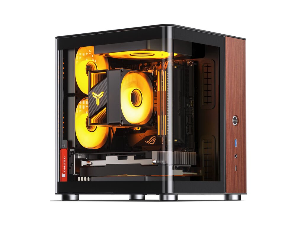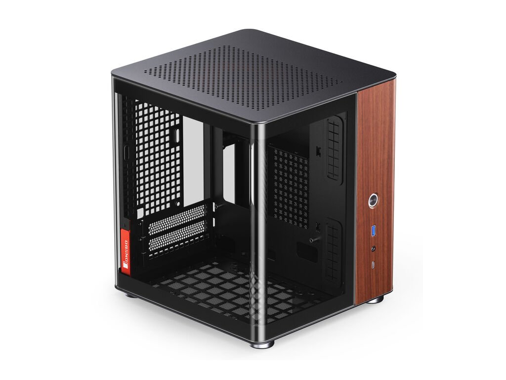 Jonsbo TK-0 PC skriňa, mini tower, Mini-ITX, tvrdené sklo, drevo - čierna