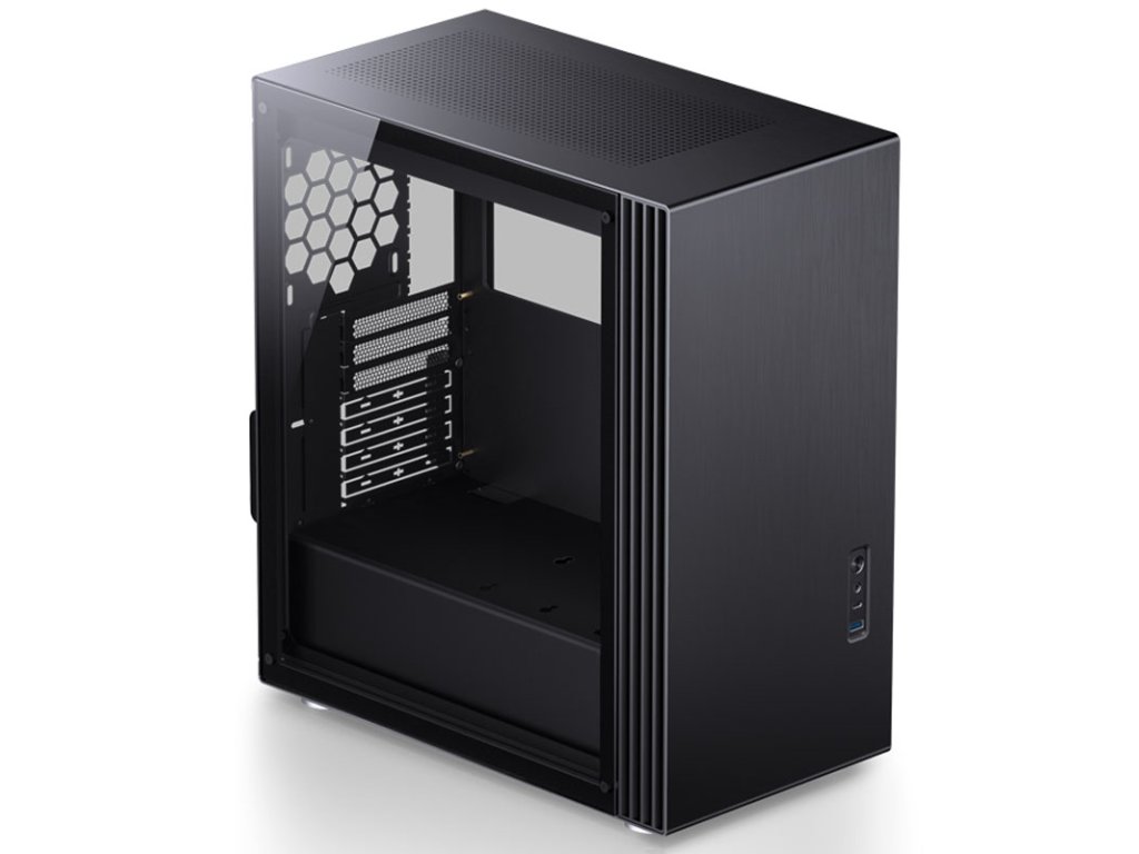 Štýlový midi tower pre základné dosky do formátu ATX od spoločnosti Jonsbo zaujme svojím elegantným dizajnom. Na stránke U6 od Jonsbo je založený na diskrétnom exteriéri s brúseným hliníkom a bočným panelom z tvrdeného skla. Midi veža ponúka dostatok priestoru pre výkonný hardvér a šikovne ho prezentuje. Midi tower je vybavený vypínačom napájania na ľavej strane adva porty USB 3.0.Priestor pre hardvér a dobré chladenie