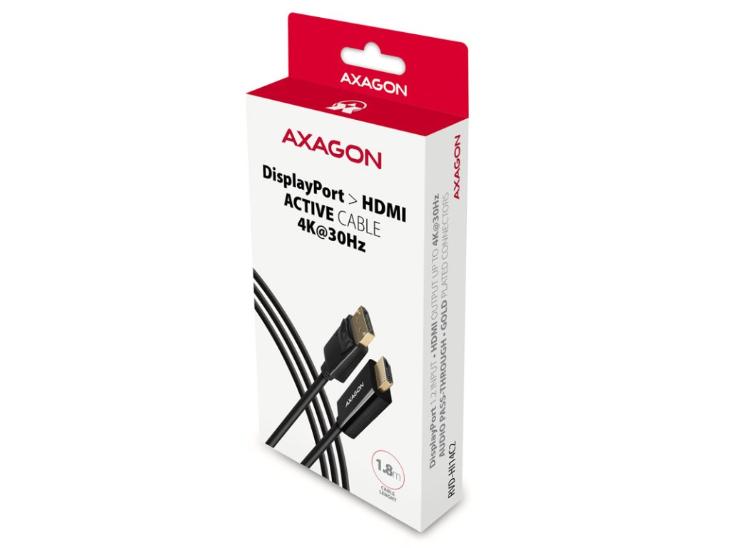 Kábel adaptéra AXAGON RVD-HI14C2 DisplayPort na HDMI, 4K/30 Hz, dĺžka 180 cm - čierny