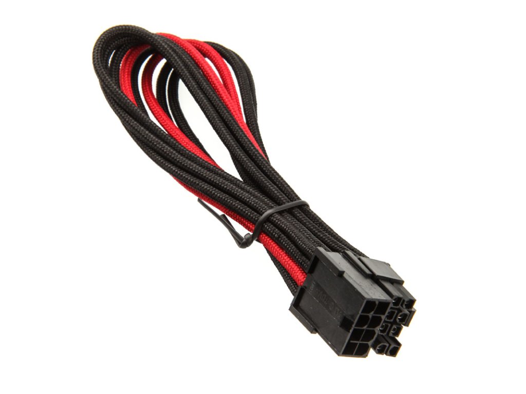 Ponúkaný produkt je kábel PCIe 8-pin na PCIe 6+2-pin, ktorý je dlhý 25 cm a je potiahnutý čiernymi a čiastočne červenými textilnými obalmi. Ide o predlžovací kábel, ktorý nemožno zapojiť priamo do napájacej jednotky.