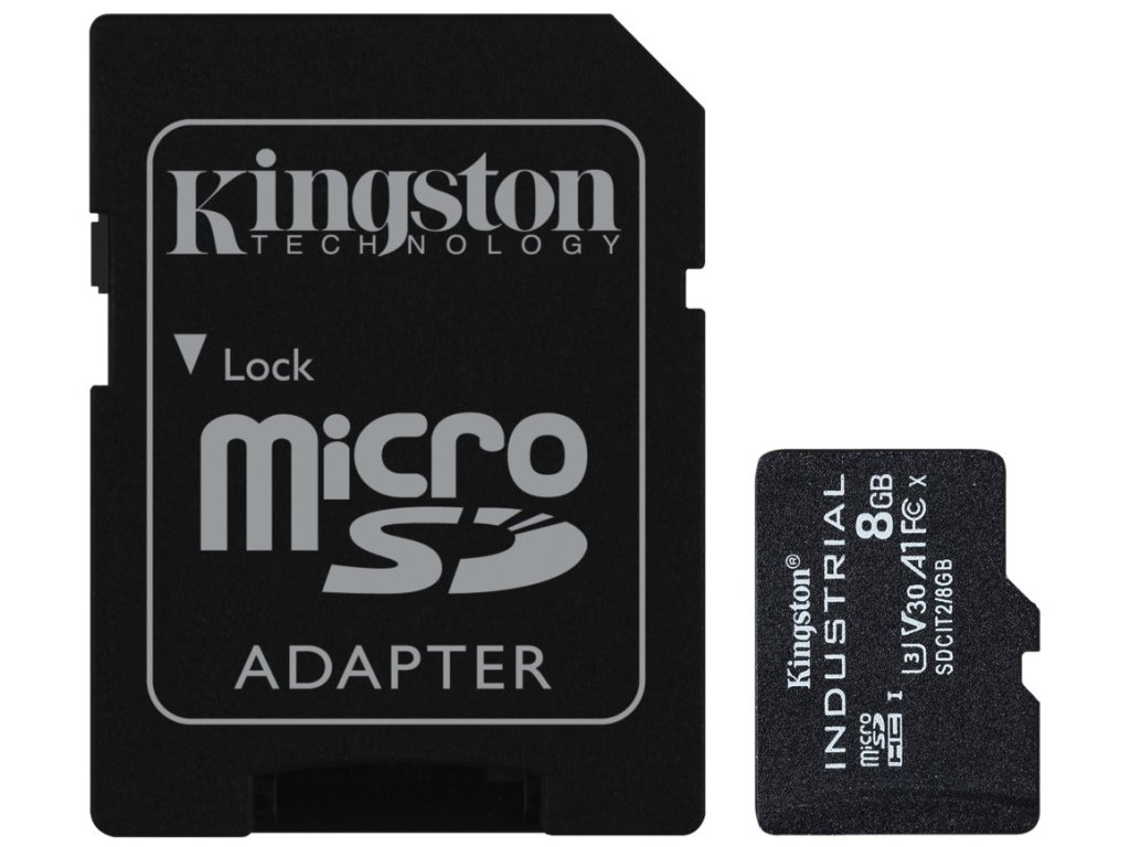 Paměťové úložiště splňuje také certifikace V30 a A1 pro efektivní provoz Android aplikací ve vysoké rychlosti, bez zpoždění a sekání. Kapacita úložiště 8 GB je vhodná pro nenáročné každodenní použití a ukládání běžných dat. Uplatní se jako paměťová karta v mobilních zařízeních nebo kamerách. Součástí balení je SD adaptér, díky kterému kartu Kingston Industrial jednoduše připojíte k PC nebo notebooku skrze čtečku.
