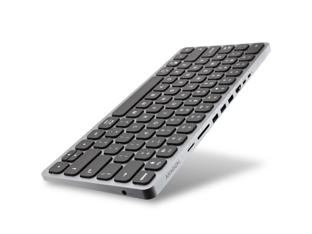 Klávesnica AXAGON HMC-KB USB-C 5Gbps s HUB-om, microSD/SD, 3x USB-A, HDMI 4K/60Hz, PD 100W, Audio, US layout