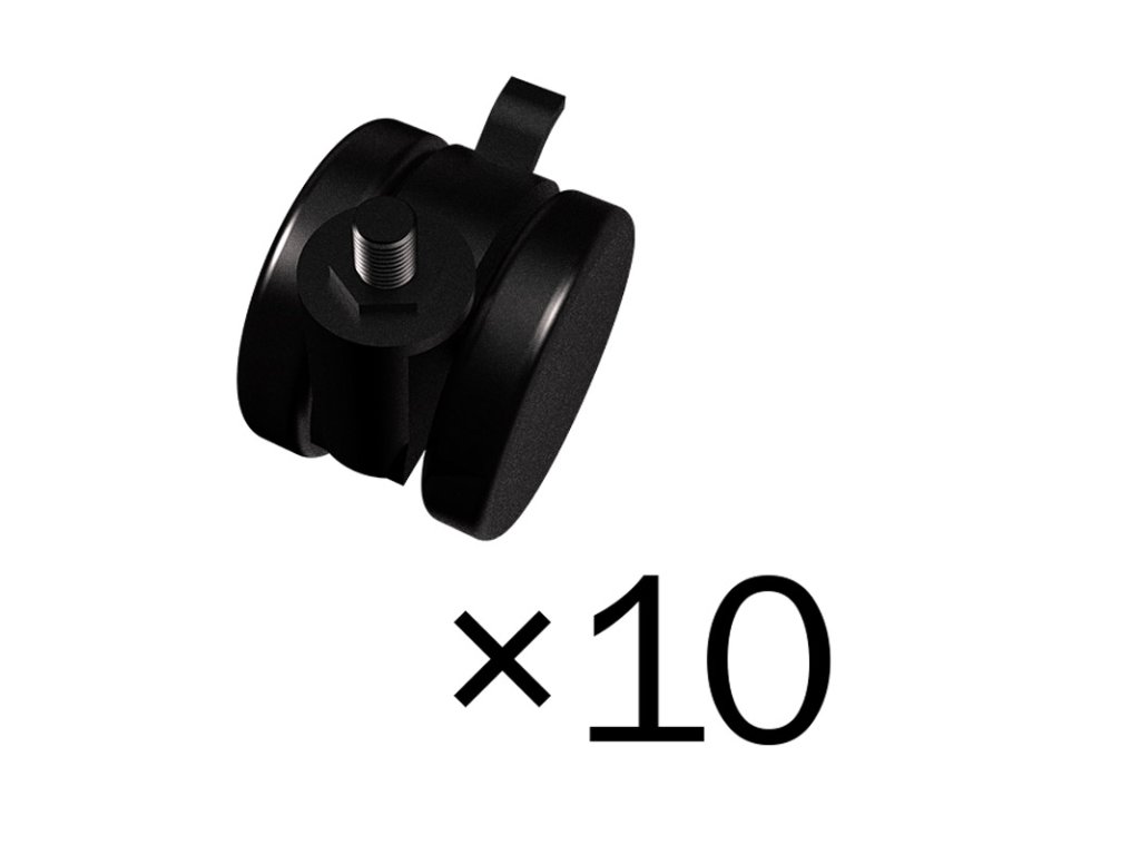 SKolieska Castor Wheels kolieska sú desať uzamykateľných otočných koliesok preKokpity simulátorov F-GT a Challenger z adresyĎalšia úroveň pretekov. Kolieska sa pohybujú veľmi hladko a sú ideálne na pohodlné premiestňovanie vlastného pretekárskeho kokpitu a jeho fixáciu v požadovanej polohe.Osobitnou výhodou týchto koliesok je funkcia blokovania, ktorá umožňuje "uzamknúť" kolieska jednoduchým stlačením blokovacieho mechanizmu, čím sa zabráni neúmyselnému pohybu kokpitu. To je výhodné najmä pre hráčov pretekárskych hier, ktorí používajú volant a pedále, pretože to zabraňuje posúvaniu kresla dopredu a dozadu.