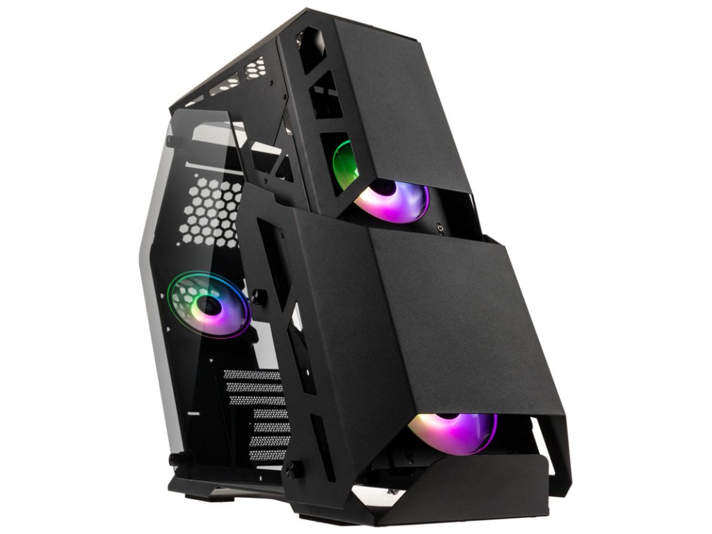 - Inovatívne navrhnutý mid-tower s vyvýšenými sklami z tvrdeného skla pre vynikajúcu cirkuláciu vzduchu