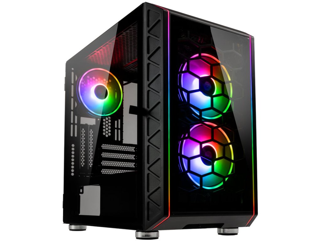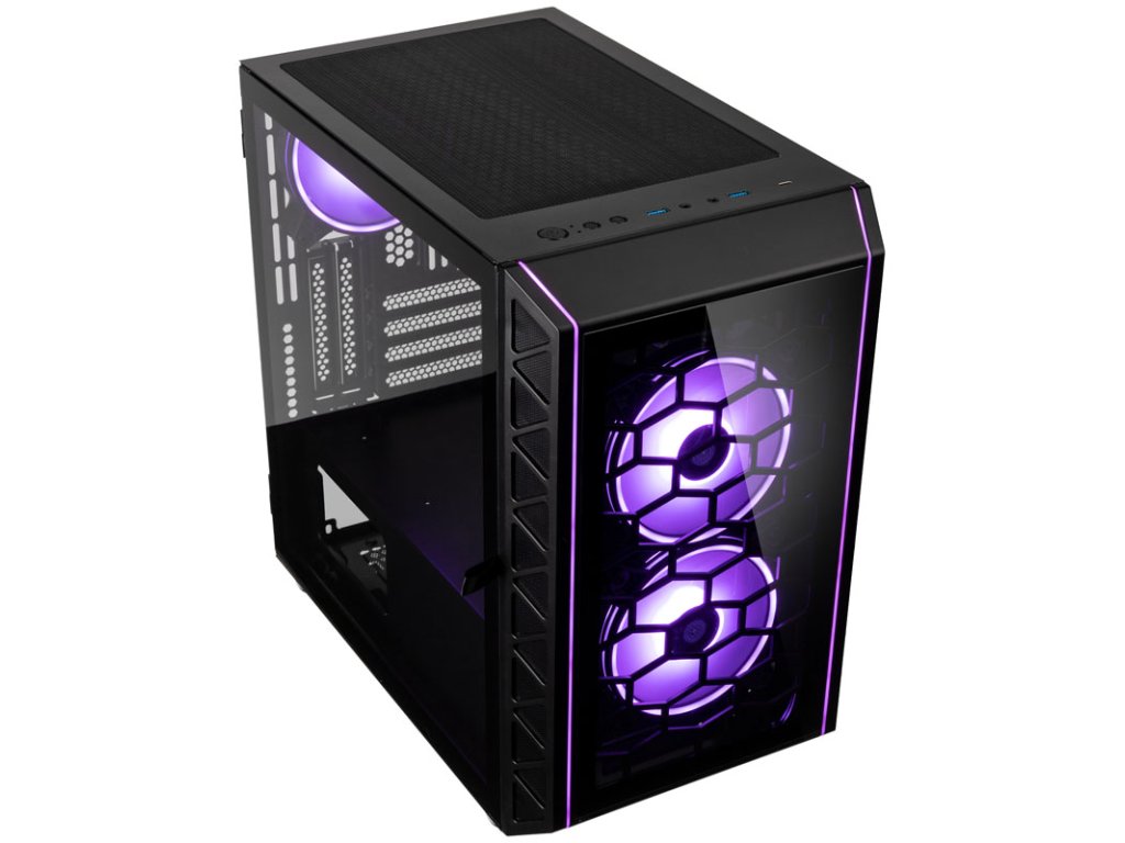 - Predná časť z tvrdeného skla s dvoma predinštalovanými 120 mm ventilátormi PWM s ARGB