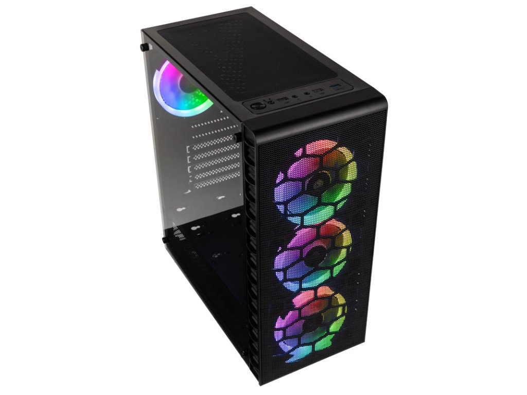 - Veľká predná sieťka s tromi predinštalovanými 120 mm ventilátormi ARGB