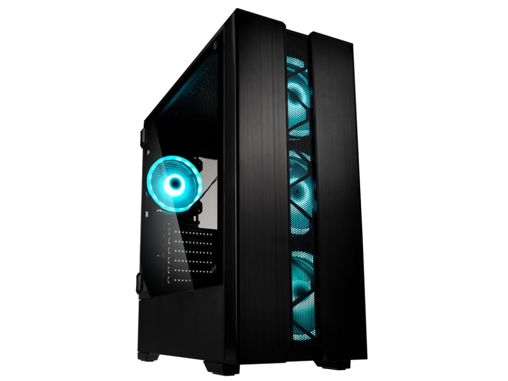 Šasi počítača je vybavené siedmimi slotmi PCIKolink Phalanx je vyrobený z ocele a na ľavej strane je vybavenýOkno z tvrdeného skla s krytom. Ten nie je jednoducho pripevnený skrutkami, ale vďaka dvom pántom sa dá ľahko sklopiť. Spodná časť je úplne zakrytáPlášť kde sú napájacia jednotka a jej nevzhľadné káble elegantne ukryté. Tu sa nachádzajú ajdve 3,5 alebo 2,5-palcové pozície pre disky je prispôsobená. Na pravej strane za základnou doskou je priestor pre tretí 2,5-palcový pevný disk alebo SSD.Vynikajúce vetranie zabezpečuje nielenštyri predinštalované 120 mm ventilátory s digitálne adresovateľným osvetlením RGB LEDale predovšetkým sieťový pás v prednej časti krytu. V prednej časti sú nainštalované tri ventilátory tak, aby ich bolo vidieť cez sieťku v prednej časti. Jeden je umiestnený vzadu. Všetky ventilátory sú pripojené kobsahuje rozbočovač ventilátorov/RGB regulátor pripojené.