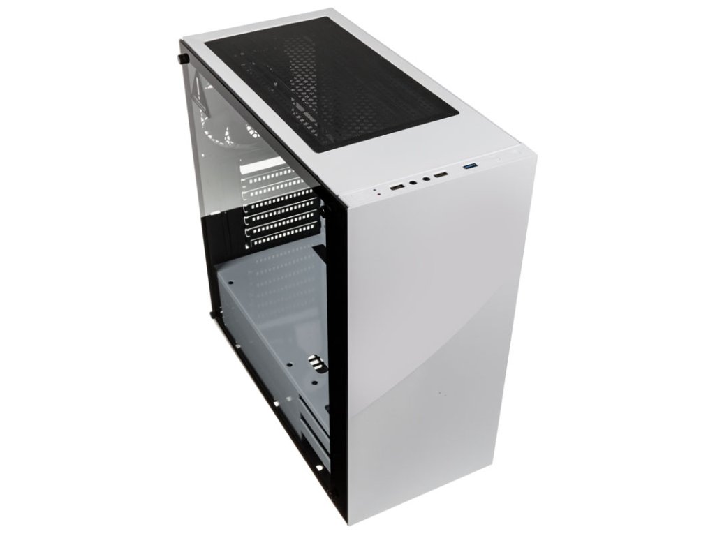 Pevný podvozok pozostáva zmilimeter hrubá oceľ SECC a je vybavenáštyri milimetre hrubý bočný panel z tvrdeného skla a predná časť z hladkého plastu s bielou vrstvou. Celý interiér je potiahnutý bielou farbou s výnimkou zadnej časti so siedmimi slotmi PCI a vybavený krytom napájacieho zdroja, aby sa dosiahol mimoriadne čistý vzhľad. Ten poskytuje priestor pre trvalo nainštalovanú klietku pevného disku s držiakmi pre dva 3,5 alebo 2,5-palcové disky a napájaciu jednotku.Na zabezpečenie vetrania hardvéru inštalovaného v kryte sú uždva zo šiestich možných 120 mm ventilátorov, tiež v čiernej farbe, s pripojením Molex, ktoré sú súčasťou krytu a sú nainštalované. Jeden je umiestnený v najnižšej z troch možných pozícií za prednou časťou, druhý v jedinej pozícii vzadu. Ďalšie dva 120 mm ventilátory je možné nainštalovať pod veko.