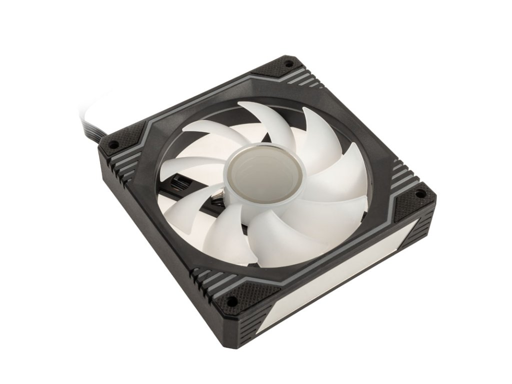 - Tri ventilátory 120 PWM s čiernym rámom a bielymi lopatkami