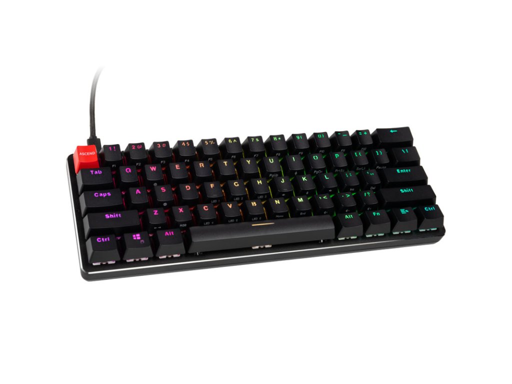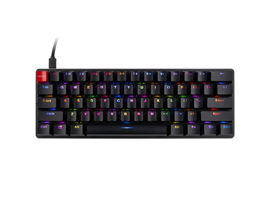 - Rozloženie: Štandardné americké (ANSI) (kompaktné, 61 kláves, QWERTY)