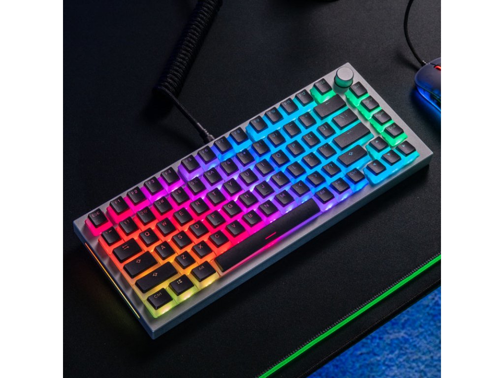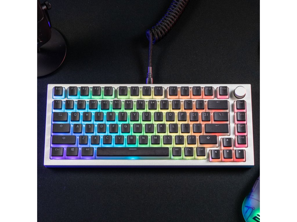 - Plne prispôsobiteľná 75% klávesnica TKL v striebornej farbe