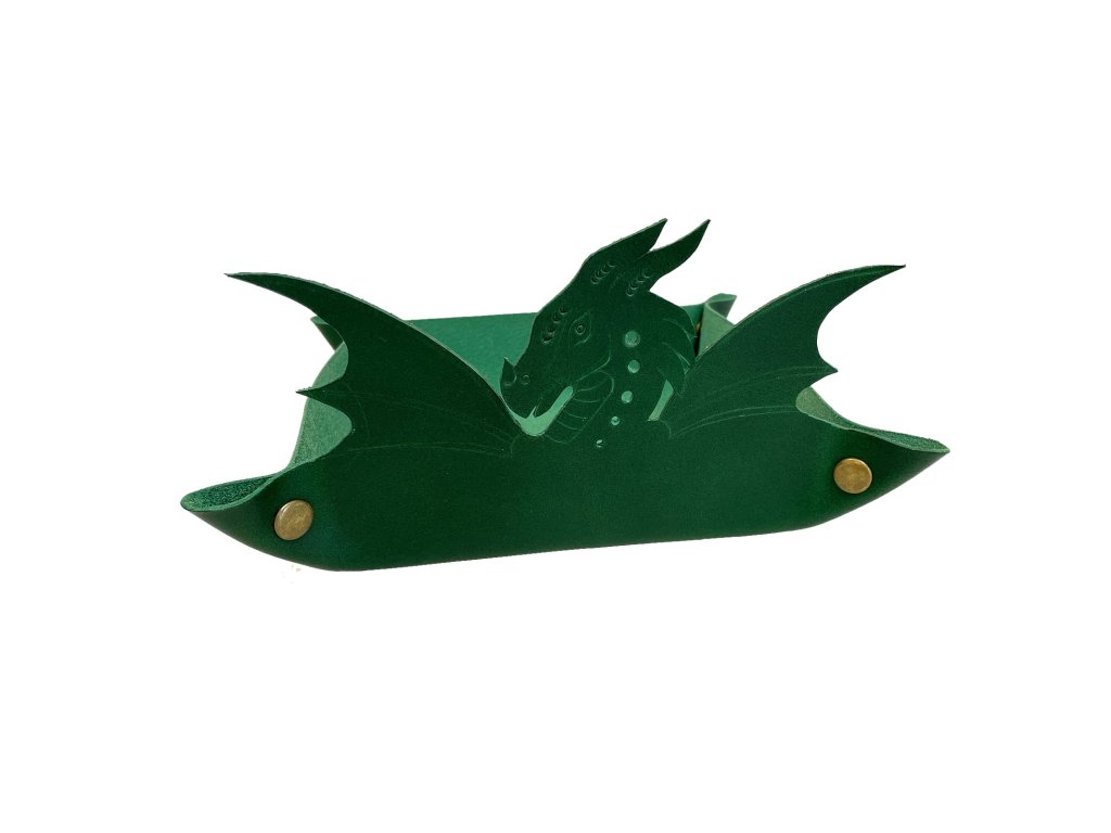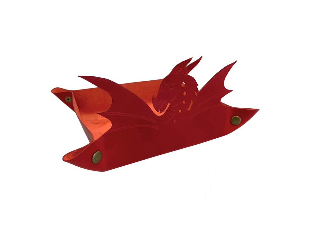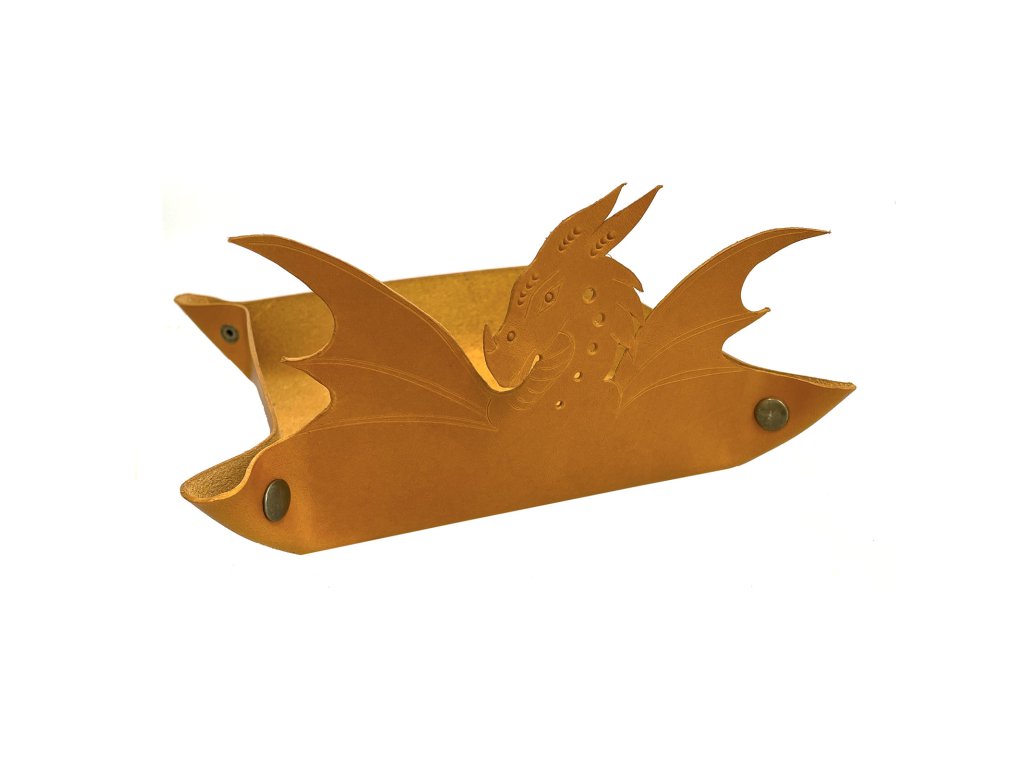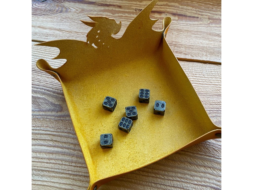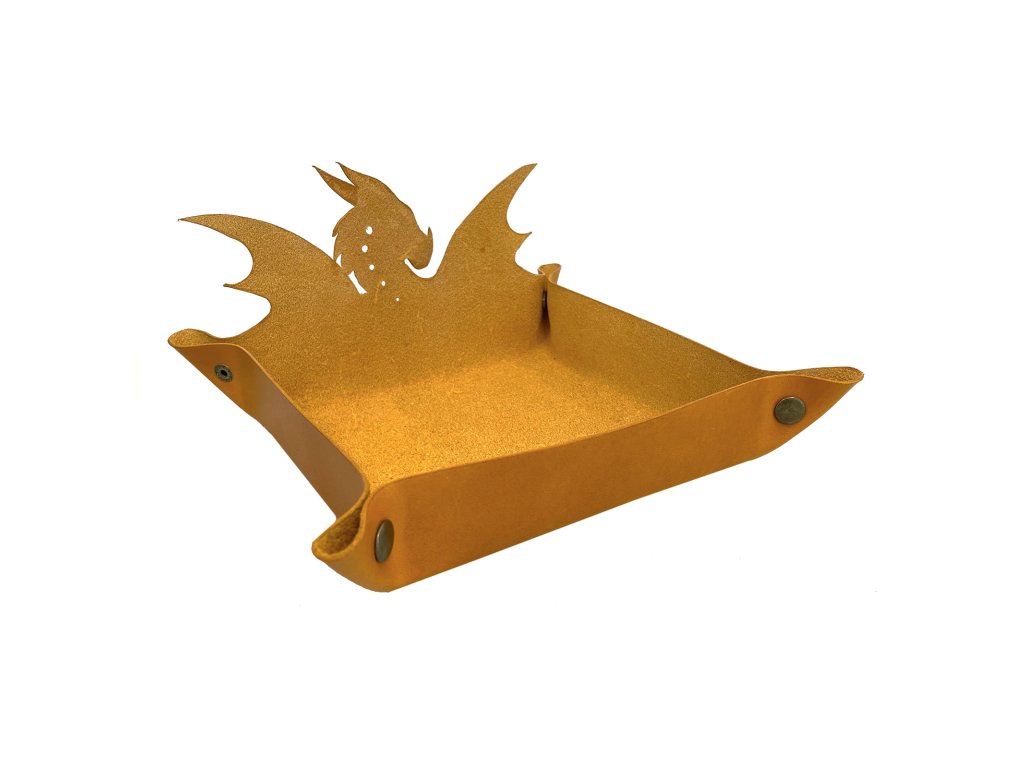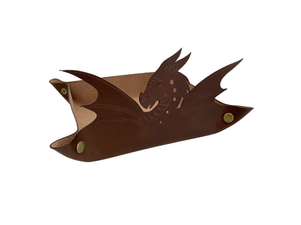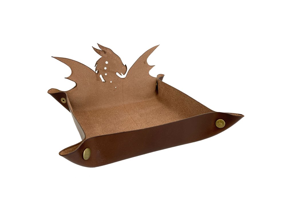 Stylový kožený dice tray, který se vám bude hodit ke každé deskovce, u které chřestí kostky a hlavně u všech her na hrdiny. Parádní podložku může šikovný Pán jeskyně použít i jako malou zástěnu, aby nebylo vidět na hody jeho kostek. Skvěle se také hodí jako stylová miska na herní komponenty. Podložku na házení kostek jsme pro vás vyrobili v naší dílně z prvotřídní hovězí kůže, která odolá i hodům kovových kostek. Rozloženou podložku snadno sbalíte do tašky či batohu a do bojové pozice ji snadno scvaknete pomocí čtyř cvočků. Kožený dice tray s drakem jsme pro vás vyrobili v pěti barevných variantách. Sami si zvolte barvu a druh svého oblíbeného draka. Co o jednotlivých dracích říkají pravidla klasického Dračího doupěte? Hnědý drak se vyskytuje v bažinách a mokřadech. Jeho zbraní je leptavý proud kyseliny. Rudý drak se většinou vyskytuje v sopečných oblastech. Chrlí žhavou směs, která je trochu podobná lávě. Žlutý drak je doma na poušti. Jeho zbraní je žhavý, jako z pece vypuštěný vzduch. Zelený drak žije v jehličnatých a listnatých lesích mírného pásu. Dechem zeleného draka je omračující plyn, kterým někdy uspává zvěř, aby se snáze lovila. Modrý drak se vyskytuje v mírných přímořských oblastech a jako jediný umí plavat a potápět se. Zbraní modrého draka je horká pára. Házecí plocha je velká 16 x 16 cm, v rozloženém stavu dračí dice tray měří 25 x 32 cm.Diskusia