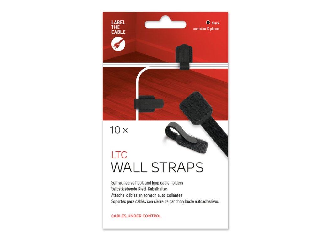 LABEL THE CABLE Nástenný držiak káblov na suchý zips sada 10 ks - čierny