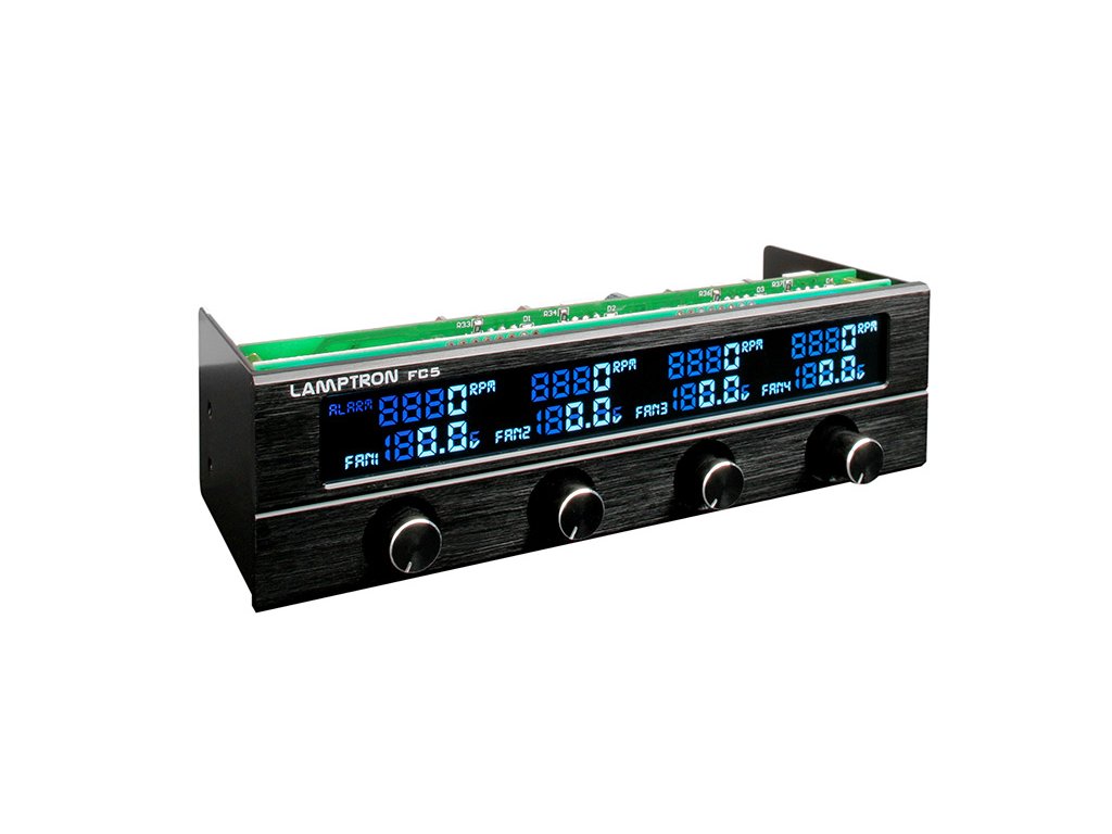 Aby ste mohli prispôsobiť chladiaci výkon a objemový vývoj počítača svojim vlastným a meniacim sa požiadavkám, umožňuje tento riadiaci systém priamy prístup prostredníctvom štyroch kanálov. Výrobca Lamptron sa rozhodol pre klasické usporiadanie s otočnými ovládačmi.Tie sú umiestnené na pevnom čiernom hliníkovom paneli vo formáte 5,25 palca a sú určené pre príslušné sloty. Podľa výrobcu môže byť každý zo štyroch kanálov zaťažený maximálnym výkonom 30 W. Plynulá regulácia prostredníctvom otočného ovládača ponúka šírku pásma od 0 do 12 voltov.