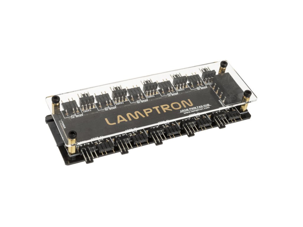 Ventilátor a rozbočovač RGB od spoločnosti Lamptron. Po deväť pripojení pre 3/4-pinové ventilátory a ARGB prvky.Prehľad funkcií rozbočovača Lamptron SP901-ARGB: