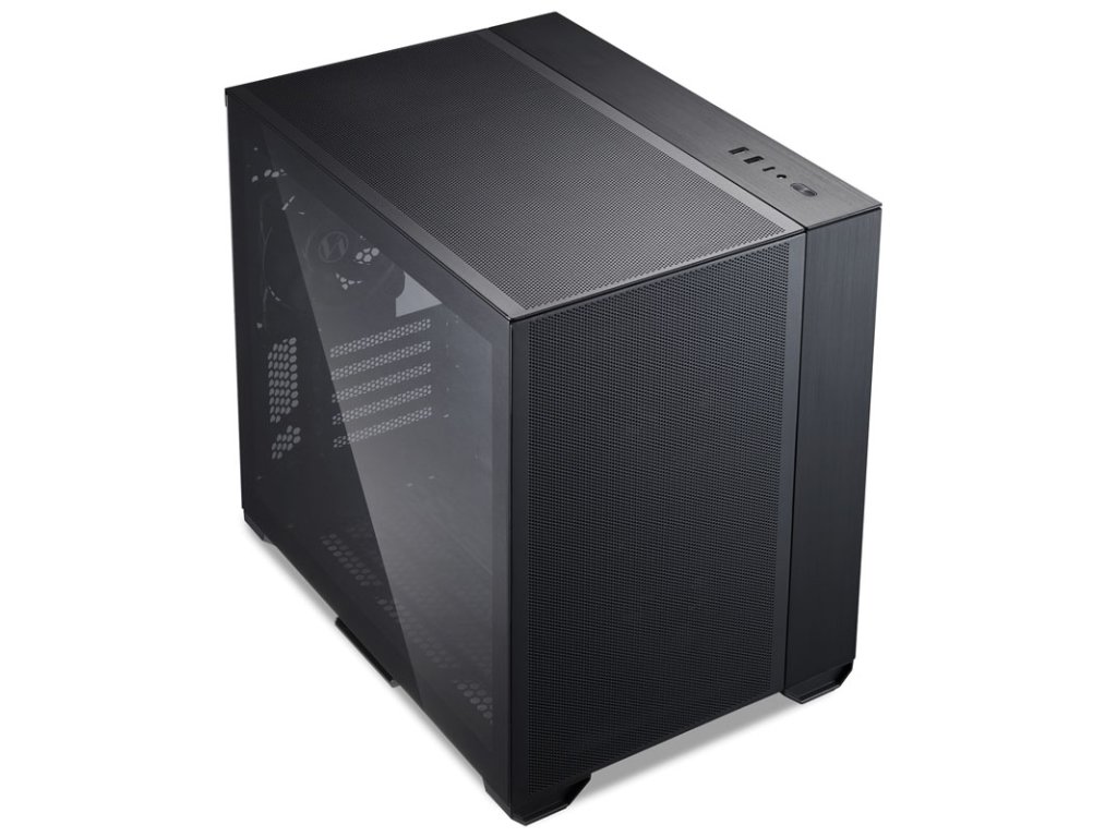 StránkaLian Li O11 Air Mini ponúka funkčný, ale zároveň výrazný a štýlový dizajn. Základom krytu je robustný oceľový rám. Horný, predný a pravý bočný panel sú vyrobené z čierneho eloxovaného, brúseného hliníka. Ľavý bočný panel je vyrobený zo 4 mm hrubého, tónovaného tvrdeného skla, aby ste mohli predviesť svoj hardvér. Pripojenia a ovládacie prvkyLian Li O11 Air Mini sú integrované do veka, a preto sú ľahko prístupné.