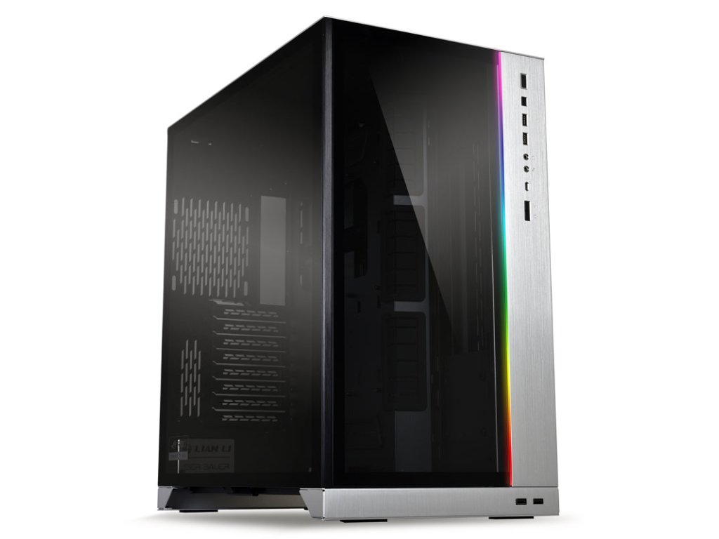 ModulárnyLian Li O11Dynamic XL (ROG Certified) Big Tower má robustnú oceľovú konštrukciu a hliníkové vonkajšie panely. Ľavý bočný panel a predný kryt sú vyrobené z tvrdeného skla a umožňujú pohľad na vnútro krytu a hardvérové komponenty nainštalované vo vnútri.Na pravej strane prednej časti sa nachádza I/O panel sjeden port USB 3.1 typu C, dva porty USB 3.0 a dve povinné zvukové pripojenia. Dvaďalšie porty USB 3.0 sa nachádzajú na pravom konci predného panela. Medzi I/O panelom a sklom z tvrdeného skla sa nachádzadiskrétny RGB LED pásikktorý sa tiahne zhora nadol a ktorého osvetlenie možno ovládať pomocou dvoch prepínačov na paneli. Alternatívne možno pásik RGB LED pripojiť aj k bežnému slotu 5VDG na vhodne vybavenej základnej doske.