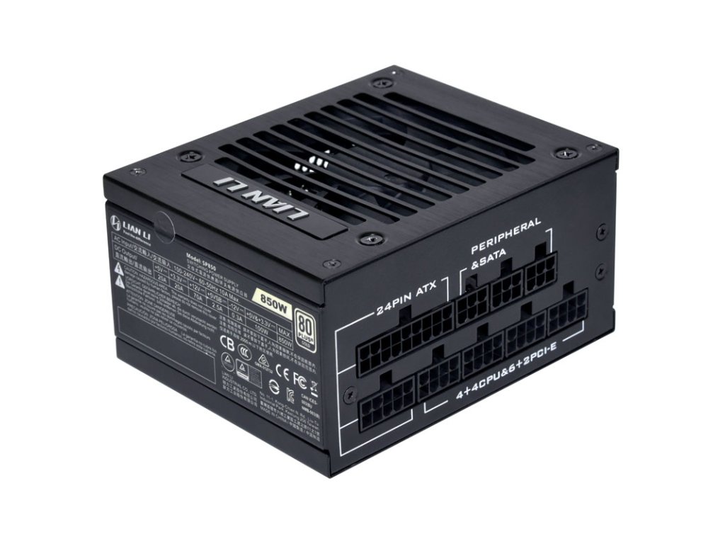 Napájacia jednotka SFXLian Li SP850 je vhodný so svojoucelkový výstupný výkon 850 W pre herné počítače v segmente high-end. Napájacia jednotka je mimoriadne účinná, čo je spôsobené aj použitím vysokokvalitných elektrických komponentov. Napájacia jednotka s80 PLUS Gold certifikovaná napájacia jednotka dosahuje účinnosť až 92 % pri zaťažení 50 %.Napájacia jednotka zaujme svojím mimoriadne kompaktným dizajnom SFX. To znamená, že napájací zdroj sa zmestí do mimoriadne priestorovo úsporných skríň bez toho, aby používatelia museli robiť kompromisy v oblasti výkonu a možností pripojenia. Napájacia jednotka má štýlový čierny kryt z brúseného hliníka. Vďaka svojmu klasickému dizajnu nenápadne zapadá do tmavých zostáv. Na stránke plne modulárny pripojovací kábel s čiernymi rukávmi zaisťujú upravený vzhľad.