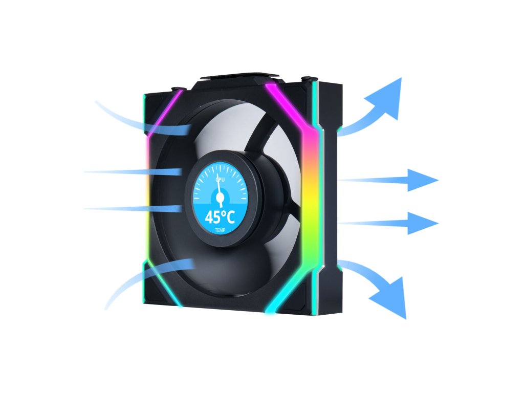 Lian Li UNI FAN SL Bezdrôtový LCD ventilátor, ARGB, PWM - 120 mm, čierny