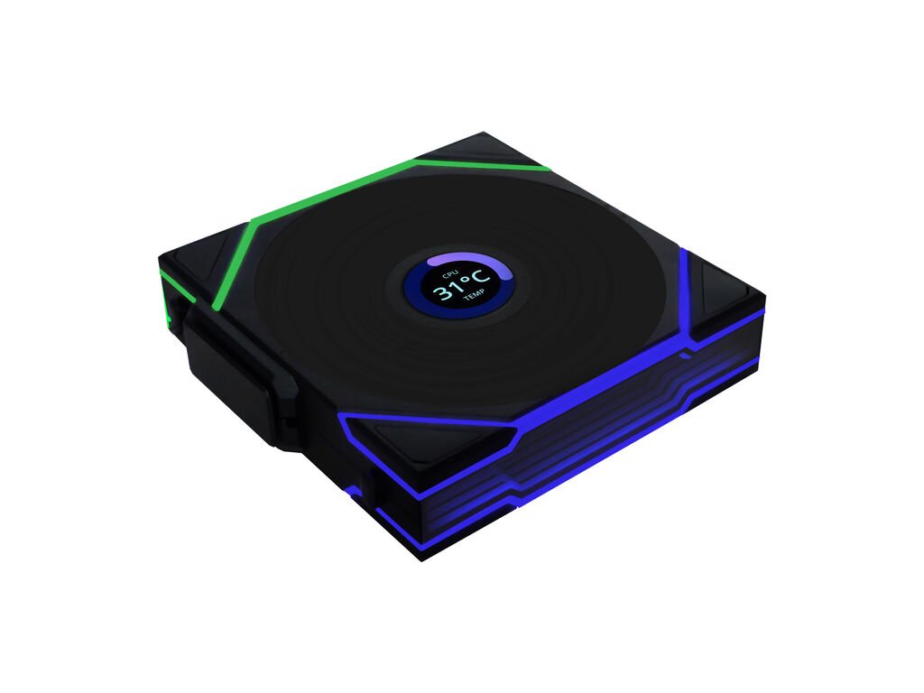 Lian Li UNI FAN TL Bezdrôtový LCD ventilátor, ARGB, PWM, 3-pack vrátane ovládača - reverzná lopatka, 120 mm, čierny