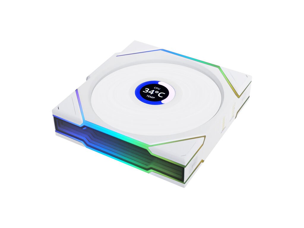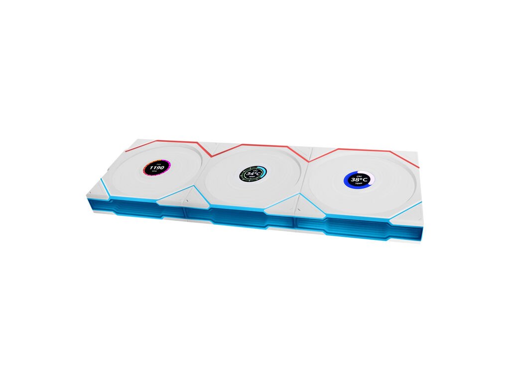 Lian Li UNI FAN TL Bezdrôtový LCD ventilátor, ARGB, PWM, 3-pack vrátane regulátora - reverzná lopatka, 120 mm, biely