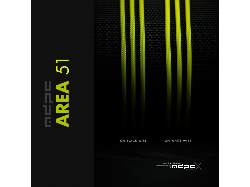 Ide o 1 m dlhý rukáv vyrobený z vysokokvalitných vlákien PET-X. V porovnaní s inými materiálmi na výrobu rukávov, ako sú napríklad "tkaniny" na báze nylonu, je materiál PET-X vodoodpudivý a odolný voči nečistotám. Okrem toho sa materiál PET-X nezapáli tak náhle a rýchlo ako nylonové materiály. Preto sa môže používať aj v najextrémnejších podmienkach od -58 °C do +155 °C.Priemer plášťov káblov MDPC-X XTC v tejto verzii je vhodný pre káble s priemerom do päť milimetrov. Tkanina je oveľa hustejšie tkaná ako malé návleky, a preto je oveľa nepriehľadnejšia a menej pružná. Môžu sa preto používať aj ako čisto dekoratívne obaly bez káblov. Na krátke vzdialenosti sa dajú pretiahnuť cez káble s maximálnym vonkajším priemerom 5,5 milimetra a vyniknú vďaka svojej farbe Area-51, ktorá sa v závislosti od farby pozadia mihá medzi neónovou zelenou a neónovou žltou.