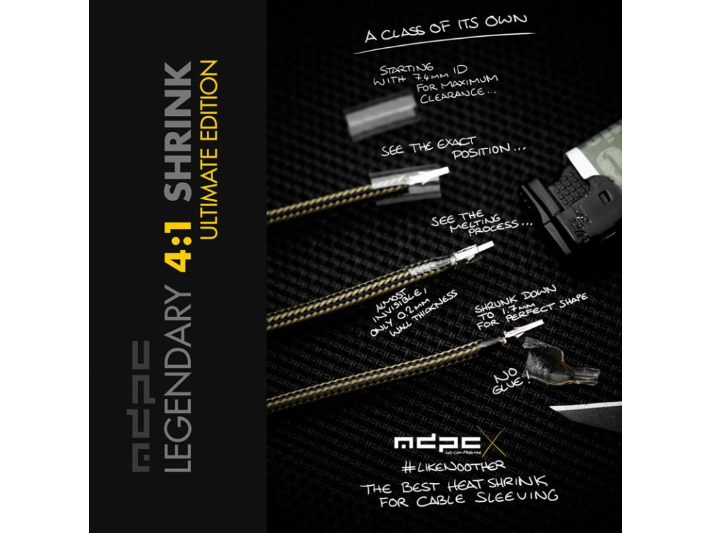 Úprava napájacích a dátových káblov ponúka zaujímavú možnosť, ako ďalej vylepšiť vzhľad počítača a prispôsobiť ho osobným požiadavkám. Pomocou objímky možno káble buď pokryť opletením kábla pre lepšiu ochranu, alebo vymeniť existujúcu objímku. Široká škála farebných variácií a UV-aktívnych náterov môže z káblov urobiť aj pútače pozornosti.Teplom zmrštiteľné rúrky MDPC-X sú vyrobené špeciálne tak, abyjednoduchý kábel premenený na dizajnový objekt to vytvára nezameniteľný estetický dojem. Najmä v kombinácii s rovnako kvalitnými obalmi MDPC-X vznikajú skutočné umelecké diela. MDPC-X je známy tým, že dodáva káblu optimálnu vnútornú pevnosť, vďaka čomu sa z neho odstránia všetky malé vlnky. Pevné uchytenie umožňuje absolútne rovnomerné a plynulé polomery oblúkov alebo rovné línie - bez pomoci pomocných predmetov, ktoré by museli vynútiť prirodzený tok a narušiť vzhľad.