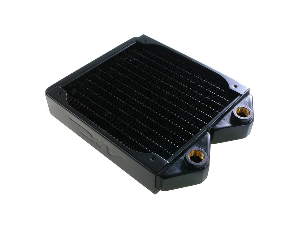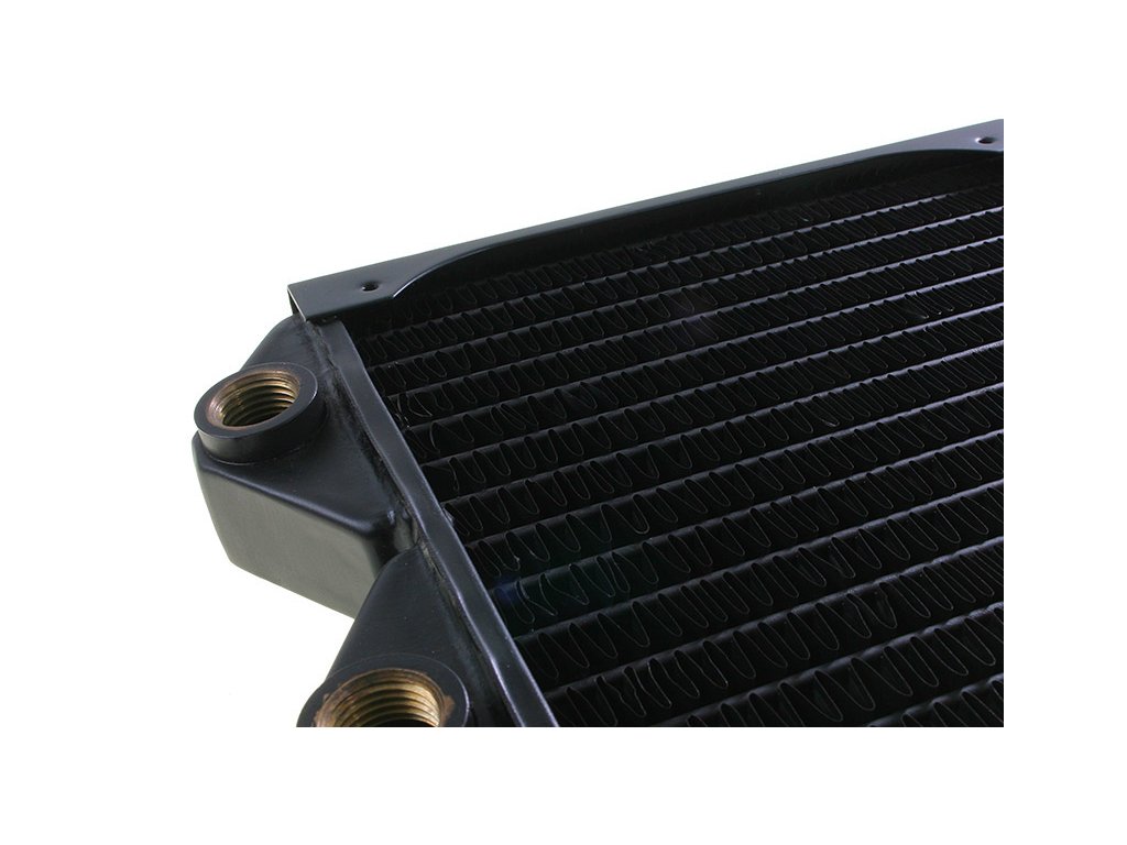 Aby sa optimalizoval odvod tepla do prúdiaceho vzduchu, rebrá sú ako zvyčajne vyrobené z medi. Na integráciu do chladiaceho okruhu sú k dispozícii dva závity G1/4 palca.