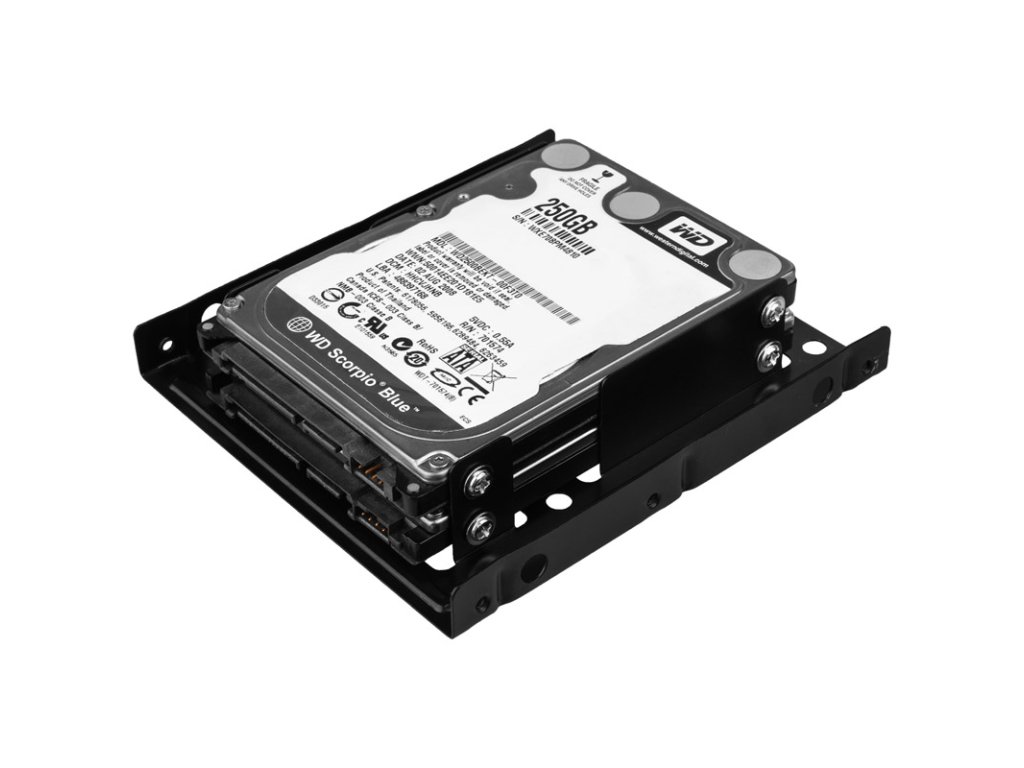 Pomocou tohto čierneho držiaceho rámu odAXAGON umožňuje umiestniť dva 2,5-palcové disky, či už pevné disky alebo SSD disky, do voľného interného 3,5-palcového slotu pre disky v skrinke. Ak teda vaša vlastná skrinka nemá žiadne sloty pre notebookové disky HDD alebo SSD alebo ich má nedostatok, držiak je riešením.Výškové obmedzenie je 9,5 mm. Na spodnej strane sú otvory pre 80 mm ventilátor, ktorý môže zabezpečiť dodatočné chladenie diskov. Montážny materiál je súčasťou dodávky.