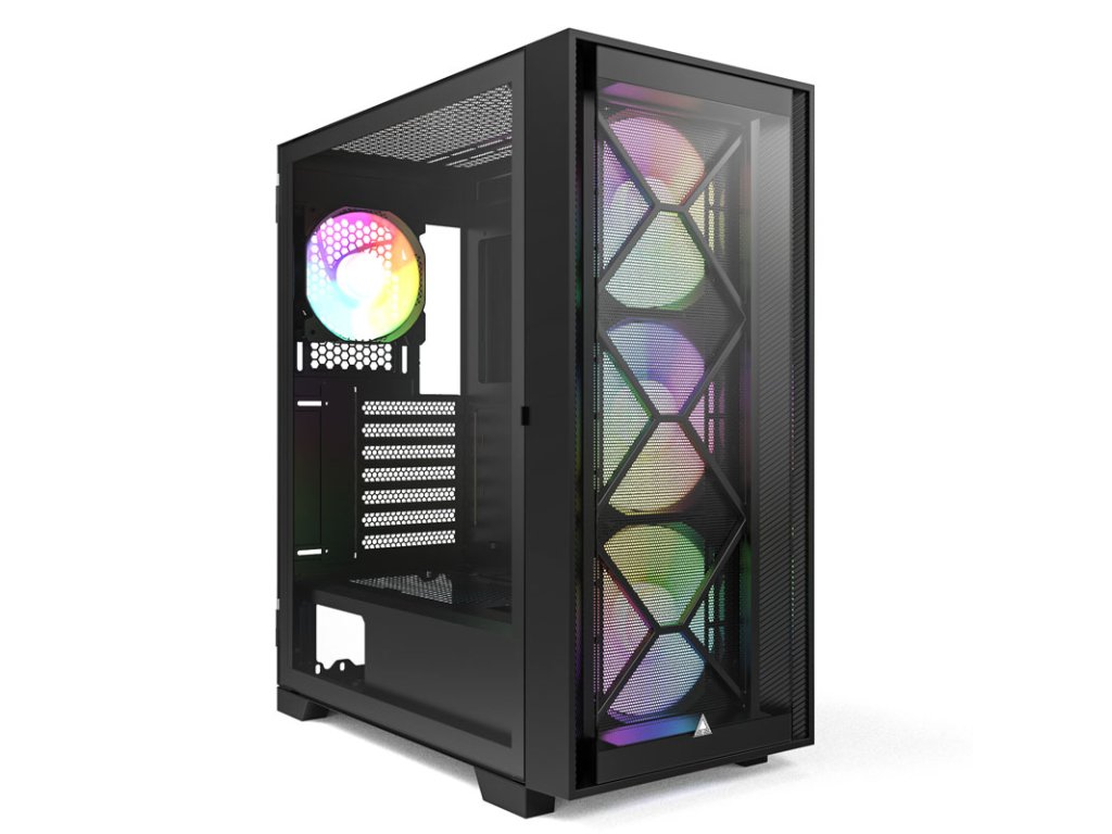 S touto skriňou si prídu na svoje tak zástancovia vzduchového, ako aj vodného chladeniaMontech AIR 1000 Premium ponukyMožnosti inštalácie celkovo ôsmich ventilátorov. Vpredu sútri 140 mm ventilátory ARGB predinštalované, ktoré možno nahradiť rovnako veľkým počtom 120 mm ventilátorov. V zadnej časti je predinštalovaný 120 mm ventilátor ARGB.