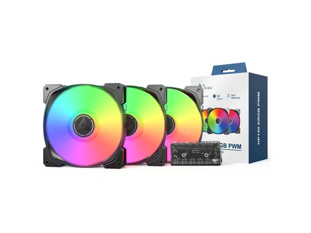 Montech HP140 PWM ARGB ventilátor, 3-pack - 140 mm, čierny