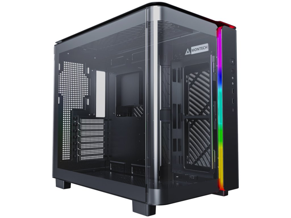 Midi vežaMontech KING 95 je ideálnym základom pre váš vlastnoručne zostavený herný počítač so špičkovým hardvérom. PC skriňa je predurčená na sofistikované vzduchové chladenie, takže si môžete naplánovať inštaláciu svojho obľúbeného herného hardvéru. Okrem toho vyzerá sakramentsky dobre, najmä vďaka prednému a bočným panelom z tvrdeného skla, ktoré do seba dokonale zapadajú.