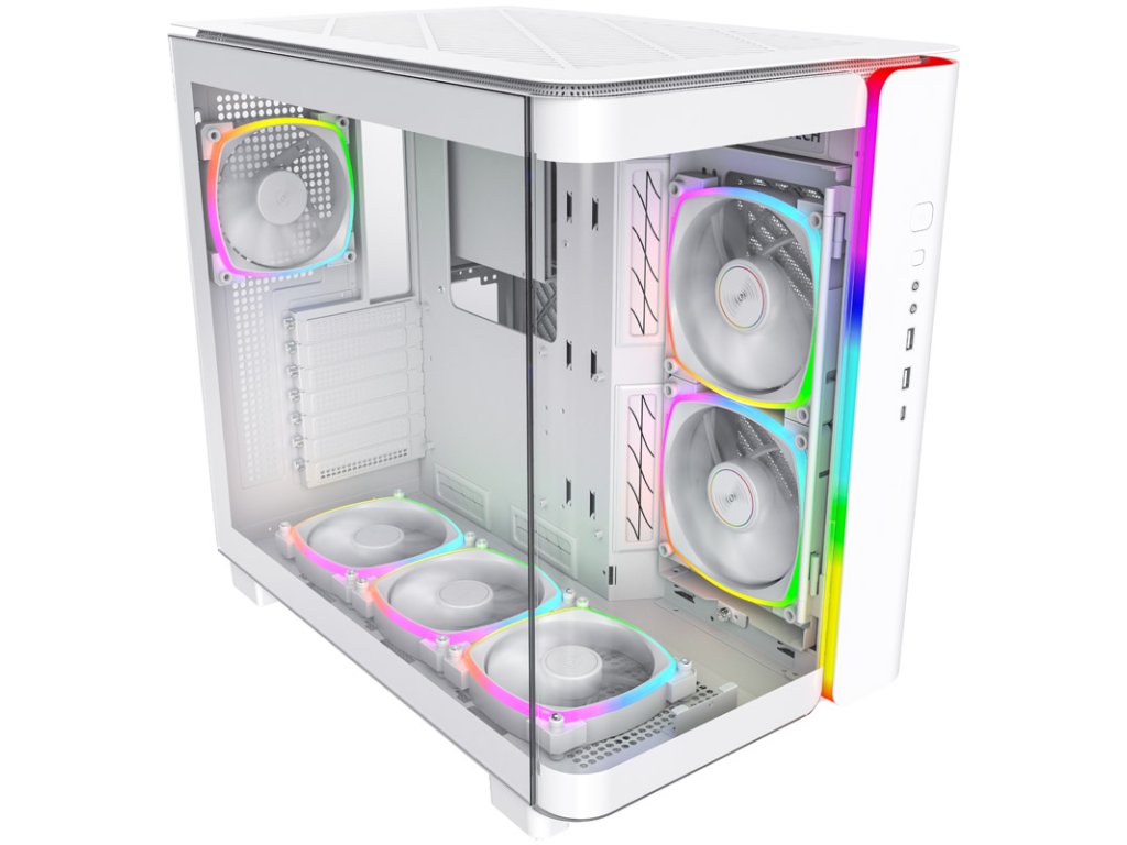 - Šesť predinštalovaných ventilátorov ARGB PWM, celkovo deväť možných