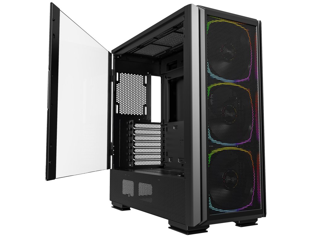 Interiér ponúka dostatok priestoru pre výkonný hardvér. Môžete uložiť ažZákladné dosky E-ATX a výkonnéHerné grafické karty s dĺžkou do 400 mm inštalácia. Podporované sú chladiče procesora do 168 mm, takže o možnosti chladenia nebudete mať núdzu.