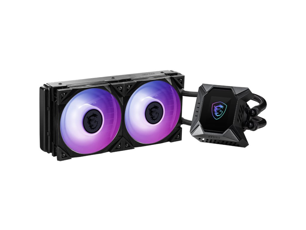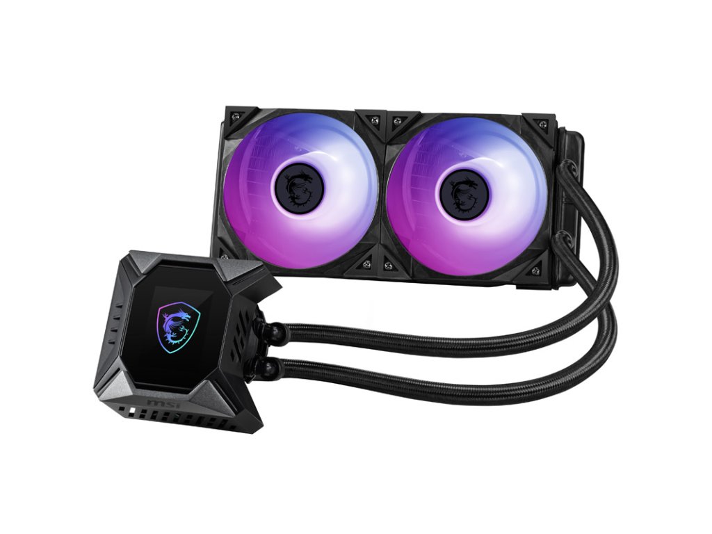 Informácie o hardvéri si môžete prečítať na 2,4-palcovom displeji IPS integrovanom vo vodnom bloku. To znamená, že môžete bez obáv pretaktovať svoj procesor a mať vždy prehľad o teplote. Displej IPS môžete použiť aj na zobrazenie GIFov, videí MP4, fotografií, textov a živých informácií o počasí.Dva výkonné 120 mm ventilátory ponúkajú aj adresovateľné osvetlenie RGB, takže môžete použiťMSI MAG CoreLiquid K240 si môžete vytvoriť svoj vlastný vzhľad.