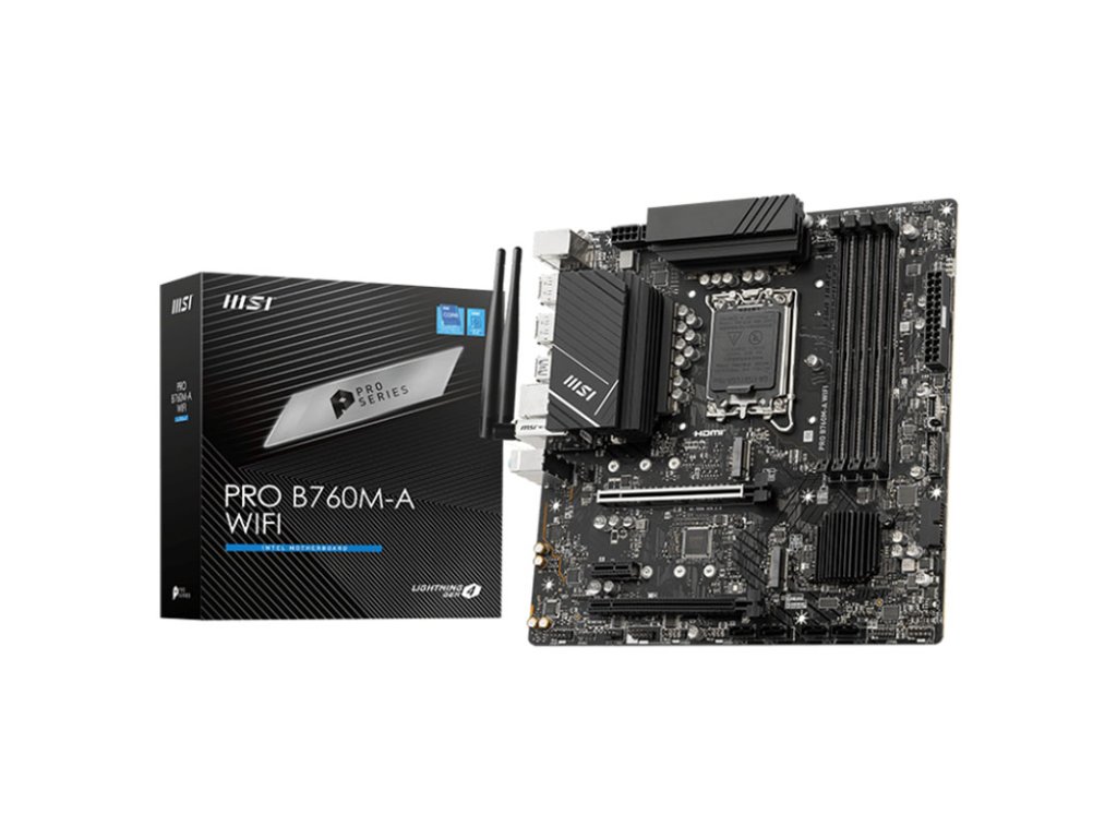 StránkaMSI Pro B760M-A WiFi je základná doska formátu Micro-ATX sČipová súprava Intel B760 aSocket LGA 1700. Základná doska je vhodná pre stolové procesory 12., 13. a 14. generácie procesorov Intel Core,Kódové označenie: Alder Lake a Raptor Lake. PodporujePamäť DDR5 s frekvenciou až 5 600 MHz a vďaka vynikajúcemu napájaniu je ideálny na pretaktovanie pamäte RAM. Poznámka: Táto základná doska podporuje pamäť so štandardom DDR5. Základné dosky so socketom 1700 s kompatibilitou s DDR4 nájdete pod nasledujúcim odkazom: Na dosiahnutie čo najlepšieho výkonu procesora sa odporúča pravidelne aktualizovať BIOS základnej dosky. To sa týka najmä základných dosiek, ktoré mohli byť výrobcom dodané so skoršou verziou systému BIOS.