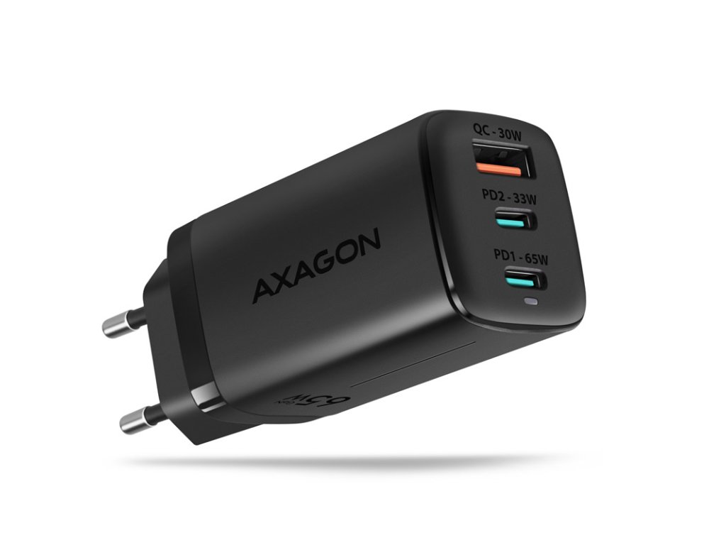 Nabíjačka AXAGON ACU-DPQ65, 2x USB-C, 1x USB-A, PD3.0/QC4+/PPS, 65 W - čierna